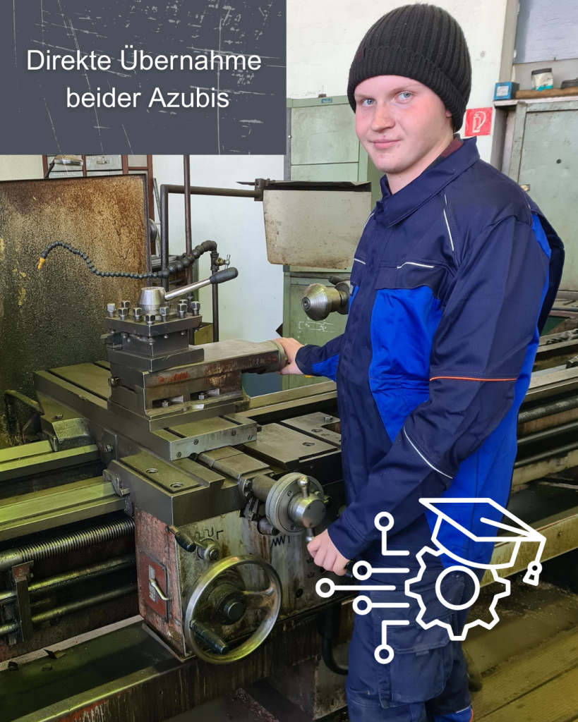 Wir freuen uns ganz besonders, dass sie unserem Unternehmen erhalten bleiben! Als Schlosser in der Dreherei und als Schweißer und Rohrbieger unterstützen beide in unserem Schwesterunternehmen SIK Peitz die Fertigung.